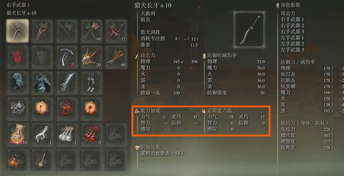 猎犬长牙是咱们在游戏前期就能拿到的一把超实用武器,战技帅伤害高,还能灵活闪避敌人的攻击。想要发挥它的最大威力,加点方面得优先考虑生命力和灵巧,这两个属性能让咱们既有生存能力又有输出。力气只需要加到18点就能拿得动武器,灵巧建议加到17点这样战技的伤害和出手速度都会更舒服。耐力也得适当加一些,不然穿装备容易超重,影响翻滚和移动。