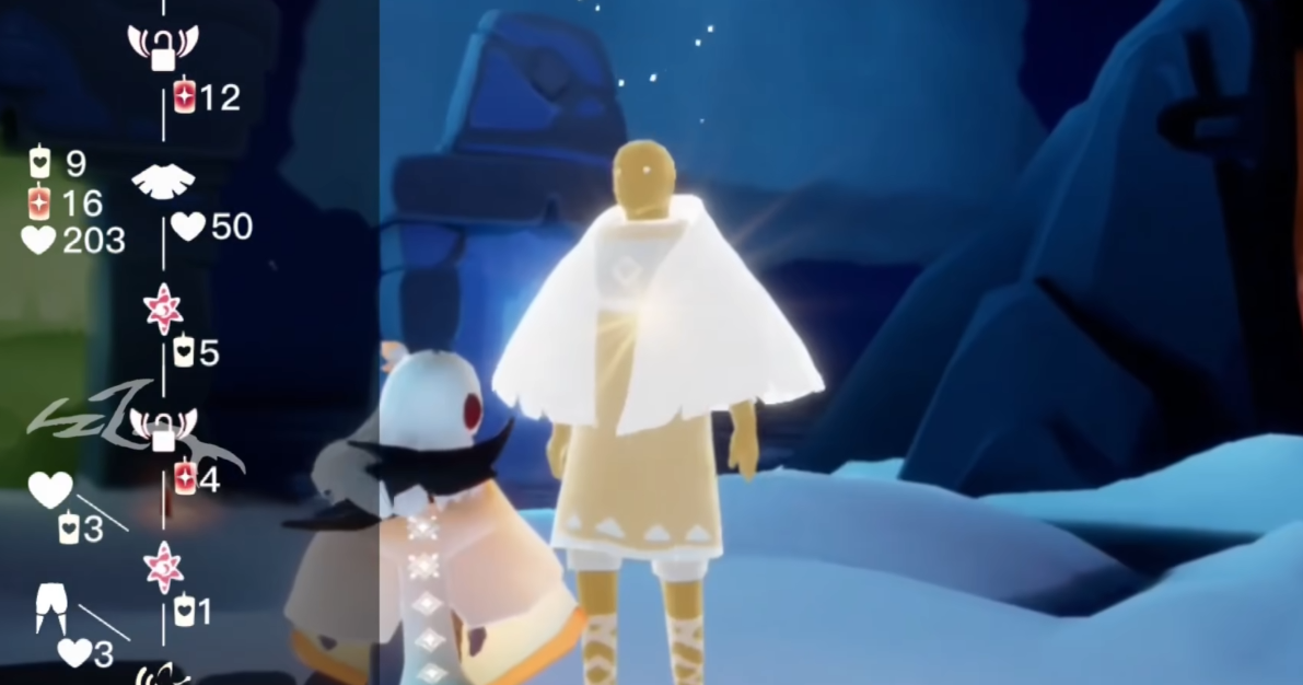 获取流程始于云野圣域群岛区域,玩家需前往主岛山崖左侧的神殿附近寻找圣岛季向导先祖。这位身着鳐鲲斗篷、背负蓝色手碟的先祖是兑换目标的关键NPC。解锁该先祖需要先完成前置物品蓝色手碟鼓的兑换,这同样需要消耗三颗季节爱心。季节爱心作为高级货币,只能通过完全解锁季节先祖的全部节点获得,每个毕业的先祖仅提供一颗季节爱心。