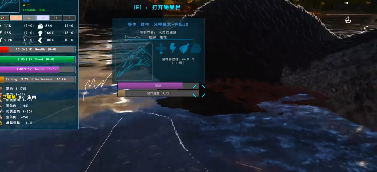 击晕后的处理环节直接影响驯服成功率。风神翼龙倒地前必须确认地面环境安全,避开水域和肉食龙聚集区。立即用木质拒马围住昏迷个体,防止其他生物干扰。优先使用霸王龙蛋饲料进行喂食,其次选择生羊肉或优质生肉。驯服期间需持续补充麻醉药维持眩晕状态,建议每30秒检查一次眩晕值。若驯服过程出现意外,可考虑通过琥珀商店的复活祭坛复活,但需提前建造封闭式复活房防止逃脱。