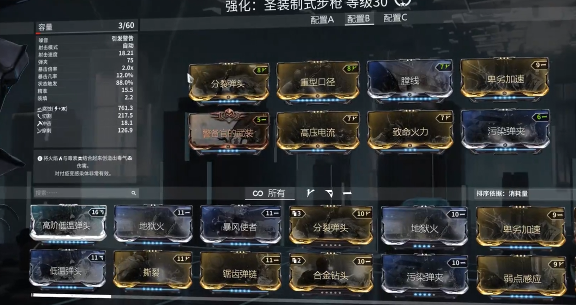 这把枪的配卡思路很简单,咱们可以优先考虑提升双暴和触发。基础伤害、银病毒、双暴这六张卡是核心,剩下两张可以根据手感选射速或装填。紫卡词条推荐双暴或多重,不过没有紫卡也能玩得很舒服。要注意的是它的冲击伤害比较低,对付护盾敌人会有点吃力,所以记得搭配冰属性MOD来弥补短板。精准度属于中等水平,中近距离表现不错,但远距离射击时子弹会有点飘。