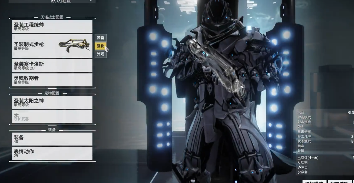 星际战甲圣装制式步枪是一把性价比超高的武器,特别适合咱们这些刚入坑不久的小伙伴。它最大的亮点就是穿刺和切割伤害兼顾,打装甲和机器人都特别顺手,而且75发的大弹夹让咱们在战斗中不用频繁换弹。虽然射速稍微慢了点,但触发率有20%,中后期也能稳定输出。这把枪的获取难度不算高,材料基本都能在神殿副本刷到,完全体的成本也比同类武器低很多,绝对是过渡期的好帮手。