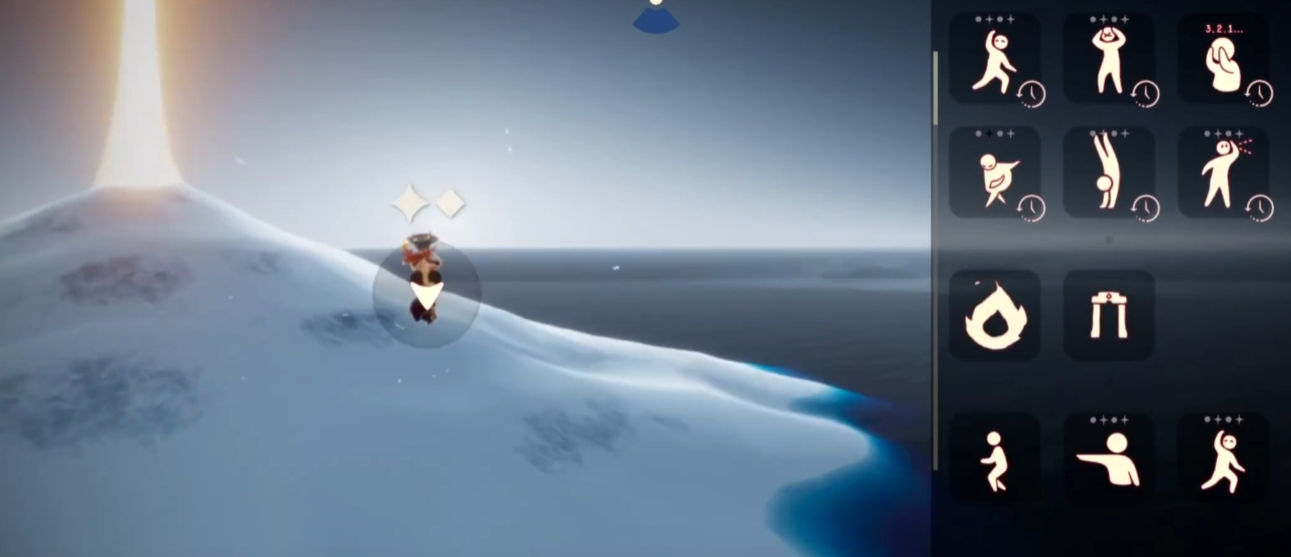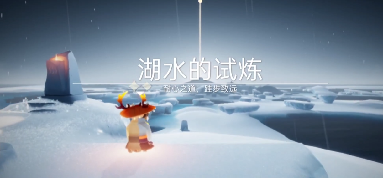 前半段路线比较简单,沿着圆形道路走到浮冰区就成功了一半。后半段需要跳浮冰,这里要特别小心,冰块很滑且间隔远。建议退潮到一半时起跳,刚好落地时水会退干净。最后一段要连续跳过三块浮冰,对准方向快速连跳,中途失误就得重来。终点是高大的石碑,跪坐互动就能获得光之翼祝福,之后在水面滑行就不怕淹没了。
