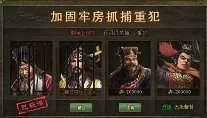 牢房左边可以用银币购买资源,有概率拿到1-3级兵书和其他随机奖励,右边则消耗金币,保底给兵书,每10次还能拿到4级以上的高级兵书。如果你不缺金币,可以多刷几次右边,毕竟高级兵书对战力提升帮助很大。不过银币选项性价比也不错,适合资源有限的玩家。最后牢房经验记得每天及时领取,别浪费了。国战和日常活动也能增加抓捕机会,多参与这些玩法能更快积累资源。牢房虽然不算核心系统,但用好它能让你在中期发展更顺利,尤其是经验获取和兵书奖励,对推图和PVP都有不小的帮助。