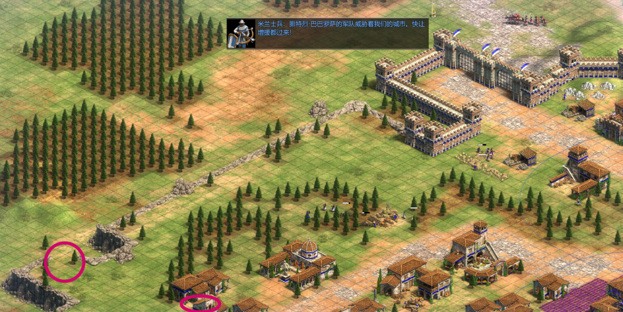 猛狮亨利这哥们会在探索地图到一定程度后突然叛变,所以咱们要提前做好准备。最好的办法是在他叛变前就用投石车拆掉他的兵营、马厩等关键建筑。投石车可以强制攻击他的建筑,他的部队只能干看着。城堡可以留到最后再拆,这样能争取更多发展时间。