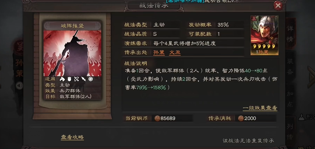 兵书选择的底层逻辑需结合战法联动。赵云若携带破阵摧坚等群体输出战法,以治击乱可对受控目标额外造成12%伤害,与关羽的威震华夏形成联动;张飞的胜战兵书能在第二回合触发65%伤害加成,配合刚勇无前可打出毁天灭地的爆发;关羽后发先至兵书则确保箕形阵等关键战法优先释放,压制敌方主将输出。若张飞担任辅助位携带盛气凌敌,兵书可调整为以治击乱、神机强化控制收益。