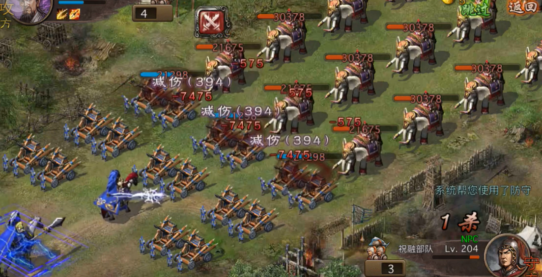 首轮敌方部队为常规步兵,孙策需保留第三排残血单位以吸收第二轮战法;次轮敌方释放范围攻击时,徐晃或吕蒙需以残兵消耗其兵力;最终迎战祝融时,甘宁须确保至少两排满兵力进场,利用战法压制其高额爆发。