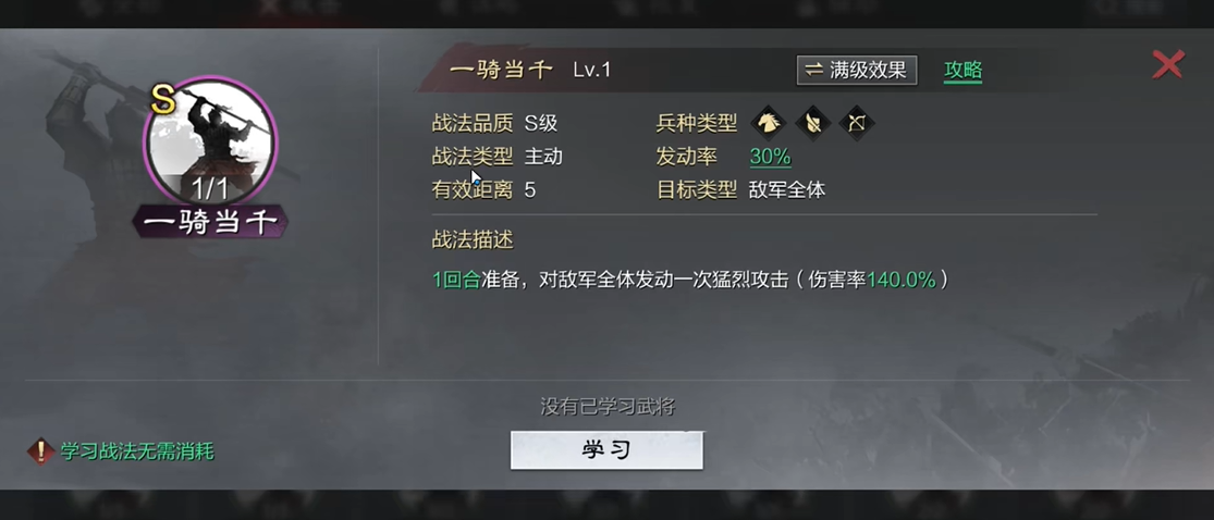 大营武将建议带一骑当千、折戟沉沙等高伤害主动战法,中军推荐落雷、大火等控制或群体输出技能,前锋必备战必断金、青囊秘要等减伤或回复类战法。战法经验有限时,优先升级核心技能到7级,比如战必断金限制敌方普攻的效果对降低战损至关重要。