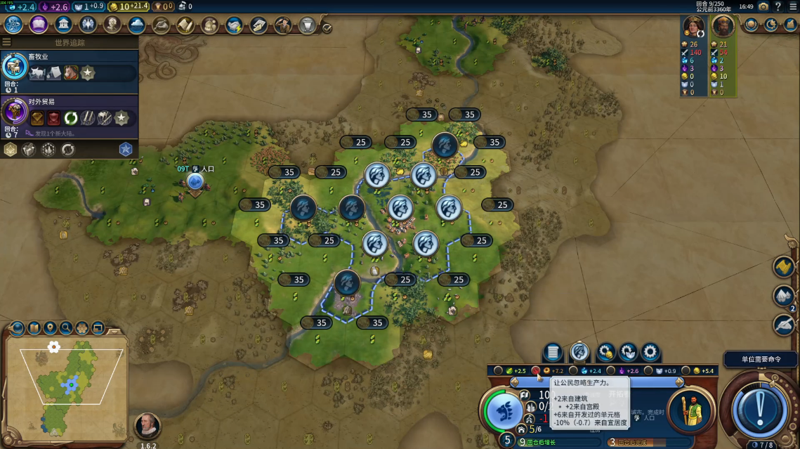 科技和文化研究同样重要,它们解锁的建筑、政策和奇观能进一步提升生产力。优先研究能提升生产力的科技,比如轮子解锁水车,工业化增强工厂效率,这些都能让建造事半功倍。文化树中的某些政策也能缩短建造时间,比如减少区域建造成本的卡片。和其他文明或城邦搞好关系,通过贸易路线或结盟获取额外资源,也能间接提升建造效率。