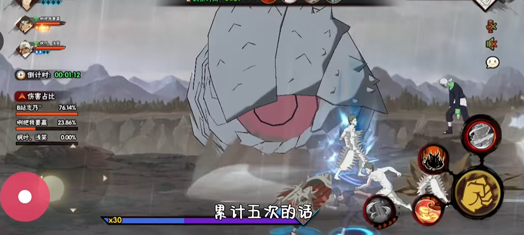 第二阶段场景切换后,由木人进入尾兽化形态,主要攻击方式为从天而降的鼠玉。鼠玉落地前会在地面显示红色预警范围,需及时走位躲避。此阶段由木人仍保留霸体机制,但攻击频率降低,建议保留奥义技能在其破防时爆发输出。部分忍者奥义具备无敌帧(如猿飞日斩秽土转生),可规避鼠玉伤害并反击。团队协作中,建议分配一名队员专职吸引仇恨,其余成员负责清场与支援。