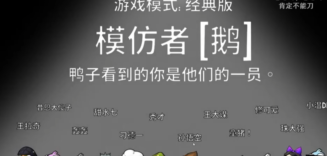 模仿者是鹅鸭杀中一个独特的角色,属于鹅阵营(好人),但在狼人视角中会被识别为队友。该角色能够穿梭迷雾,但无法进入管道。狼人看到模仿鹅的名字显示为红色,而模仿鹅本身看不到狼人的红名。模仿者的存在会限制狼人互刀行为,除非在地下室等特定地图或遇到炸弹王、鸭恋子等特殊情况。模仿者的核心功能是混入坏人阵营制造混乱,为好人阵营提供信息优势。