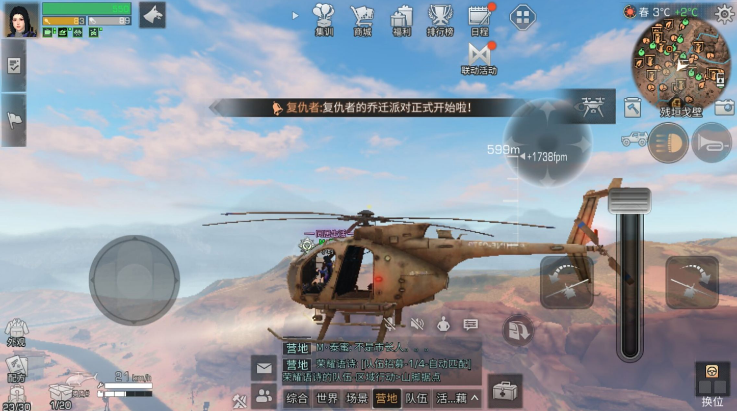 进入动荡之城,首先得找到营地的直升机。在营地中心区域转转,很快就能发现停靠的直升机,和旁边的NPC贞德对话,选择前往动荡之城就能开启冒险。每次进入需要消耗300新币,记得提前准备好资金。系统会随机把你传送到其他玩家的营地,接下来就看你的生存本事了。