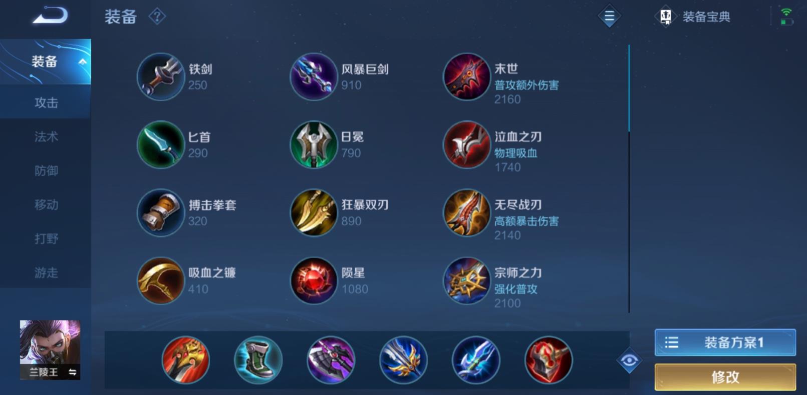 针对打野或游走支援场景,移速出装是理想选择,顺序为追击刀锋、疾步之靴、暗影战斧、反伤刺甲、破军和碎星锤,疾步之靴提供的高移速让兰陵王能全图游走,缓解队友对线压力并抓单带节奏,反伤刺甲增强物理防御,避免在切入时被反击秒杀,这种出装适合注重全局支援和持续消耗的玩法。