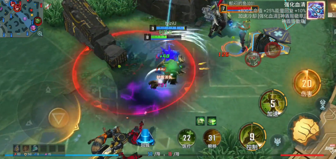 装备搭配的底层逻辑在于最大化格鲁特的持续作战能力。破碎披风与深渊之铠构成物理防御核心,宙斯之盾和星辰法球应对法系威胁,泰坦重装则强化中后期坦度。辅助向选择中,神圣之光提供的技能增强能提升大招减速效果,而死神幻影的主动效果可配合二技能实现群体控制。这种配置使格鲁特既能承受巨额伤害,又能通过频繁释放技能打乱敌方阵型。