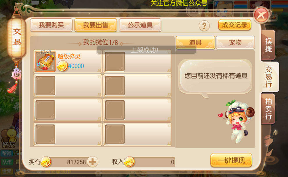 咱们想出手不用的宠物主要有三个靠谱途径:游戏内交易行、摆摊系统和第三方平台。这些方法操作简单,还能根据市场行情灵活定价,让闲置的宠物变成金币或稀有道具。最常用的方法就是通过交易行挂卖宠物。打开左上角的交易按钮,选择我要出售后切换到宠物标签页,系统会列出咱们背包里能交易的宠物。选好要卖的宠物后,参考系统给出的价格区间填个合适价位,确认上架就搞定了。变异宠或带稀有技能的宠物可以适当加价,普通宠物则建议比均价低5%-10%快速出手。每周三、六晚上八点服务器活动结束后,大量玩家会来扫货,这时候挂宠物流通最快。