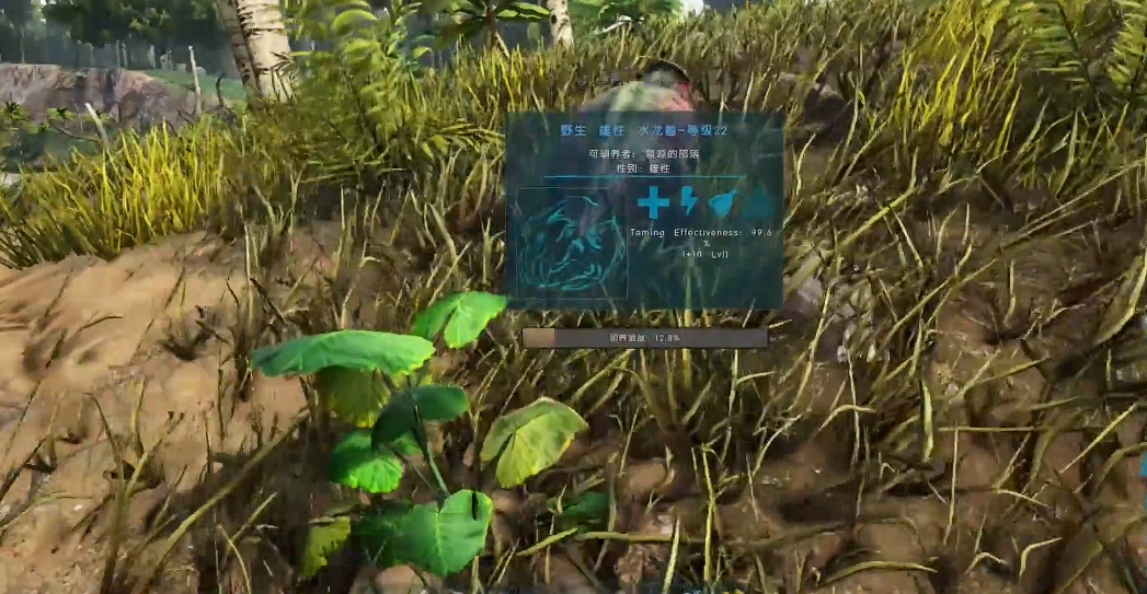 水龙兽是方舟生存进化中一种性情温顺的草食性生物,外形丑萌且不具备攻击性,即使受到玩家攻击也不会反击。这种生物主要分布在平原地带或稀树草原,因其特殊的能力成为前期必备驯养目标。驯服水龙兽必须采用和平驯服方式,击晕会导致驯服失败。驯服前需准备稀有花朵、紫色浆果或其他颜色浆果,将食物放置在快捷栏0号键位,从背后接近水龙兽按E键喂食,每次仅能投喂一颗,需间隔等待才能继续喂食直至进度达到100%。