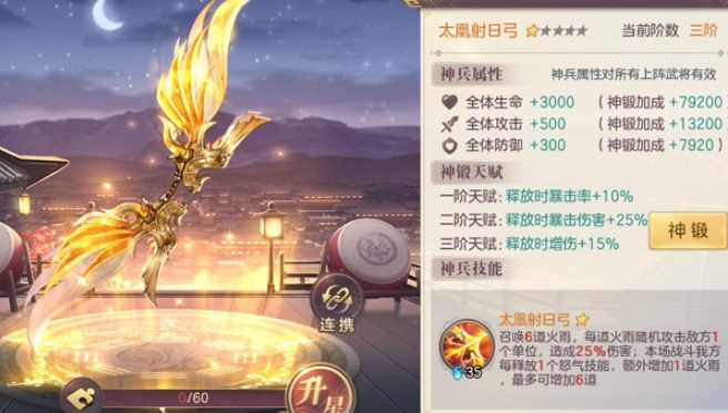 资源分配要精打细算,家园和军团商店材料买满,竞技场优先换牌子和神将碎片。战魂首选长驱直入套装,神兵用太凰射日弓、干天玄灵扇等。魂将碎片每周买满,重点培养孙尚香、张辽和赵云。新手集市屯的魂卷全抽张辽,运气好能快速3火形成战力碾压。