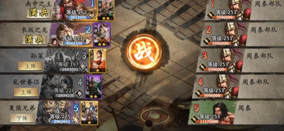 周泰副本的地形是水域,所以咱们得注意武将的地形加成。周泰本身没有战法,但副将技能会打三排,而且可以抵挡,这点和朱然副本不一样。打的时候黄忠要尽量拼死第一个部将,太史慈上场后先平砍,最后一排放战法;马超享受太史慈战法的优势,最好出突击战术;典韦最后收尾,如果前面打得顺利,典韦可能都不用上场。