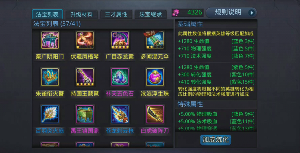 太白金星的技能组合非常注重控制和生存,她的鼓之舞和冠之舞既能造成伤害又能控制敌人,而移形换影和太白之幻则提供了强大的保命手段。选择法宝时要考虑如何强化这些特点,金伞能让控制效果更持久,琴则能在关键时刻提供额外的保护。装备这些法宝后,你会发现太白金星在战场上的表现会有质的飞跃,无论是控制敌人还是保护自己都游刃有余。