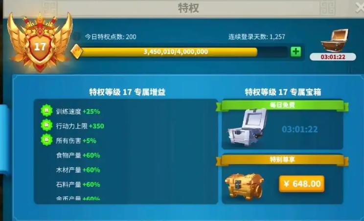 VIP等级对加速发育很有帮助,尽量把VIP升到6级。每天做日常任务、打野蛮人、参与远征模式,攒够宝石就能免费提升VIP。VIP6会送你一个永久的建造队列,还能减少建造和研究时间,这对快速冲21级市政厅非常关键。宝石别乱花,优先投在VIP上,比买其他道具划算多了。记得多收集符文和圣坛的增益效果,尤其是那些减少建造时间的符文,能省下不少加速道具。