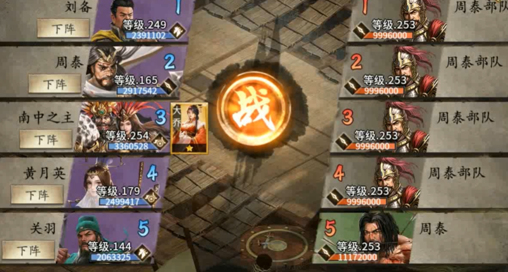 周泰是这场战斗的核心,必须给他三车和七级固若金汤,同时搭配孙坚作为副将。记得给周泰准备三个八级步兵克制,阵法等级堆到70级,这样能有效降低敌人的防御。周泰的表现直接决定了你能打到第几个NPC,通常他能坚持到第四个NPC的第三排。如果资源充足,可以给周泰额外配一个开山旗子,提升他的输出能力。
