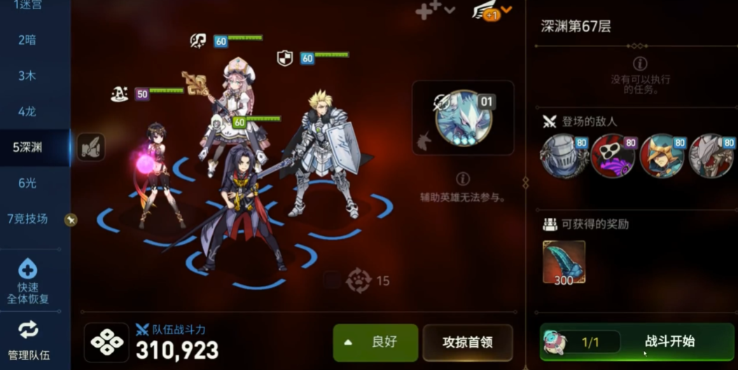 深渊67层的核心难点在于合理处理P1阶段的菠萝怪和P2阶段的水桶BOSS。该层对阵容配置有一定要求,建议携带具备免疫或解除debuff能力的角色,例如光正太或携带灵药神器的辅助。P1阶段优先集火击杀前排菠萝怪,避免破防和标靶debuff带来的生存压力,击杀第二只菠萝后需保留魂能并冷却技能以应对P2阶段。