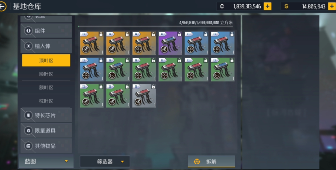 植入体是提升指挥官属性的重要道具,T2级植入体作为进阶装备,需要通过合成或开发功能获取。植入体分为顶叶区、颞叶区、额叶区和枕叶区四种类型,每个区域提供不同的属性加成,例如顶叶区强化武器伤害或射程,颞叶区提升护盾抗性或容量。T2植入体的核心获取方式是消耗低级植入体进行合成,通常需要1个R2级和3个R1级植入体作为材料。