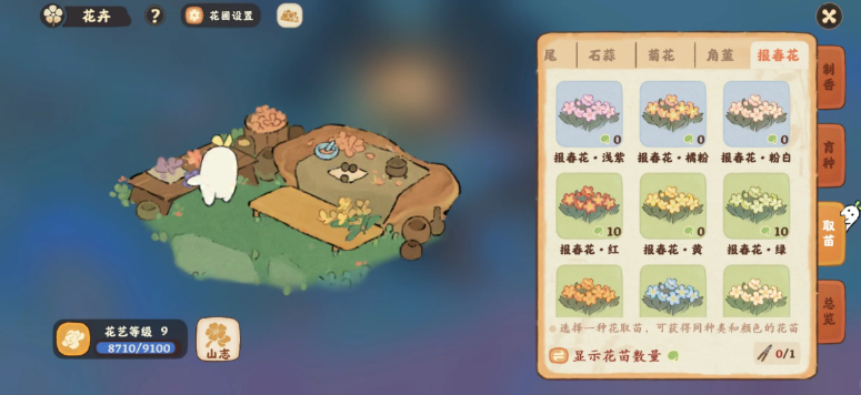 花卉培育的核心位置是花圃,它位于玩家家园的第二个岛中。要开启花圃玩法,玩家需要达到山民等级27级,这是解锁该功能的基本条件。等级达标后,玩家可在第二个岛中找到花圃并进行修复,修复完成后即可开始种花活动。这一设置确保了玩家在游戏中期才能接触花卉培育,为玩法增添了渐进性挑战。