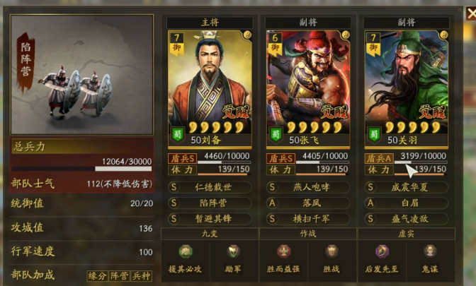桃园结义组合中,加入刘备能激活缘分效果,到第六回合为全体提供抵御,刘备的稳定治疗弥补了张飞智力偏低的短板,而关羽的控制技能与张飞的破防效果联动,形成攻守兼备的体系,无论你选择盾兵、枪兵还是骑兵配置,这套阵容都表现稳健,由刘备主将的盾兵配置更稳妥,确保你在持久战中保持续航。