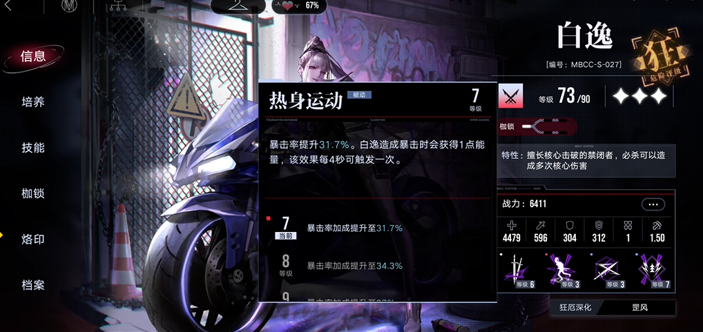 完成重构加点后的白逸,其玩法定位会得到进一步巩固与拓展。她不仅保留了游戏初期就赖以成名的、通过疾风乱流技能进行高效破核的核心能力,而且在伤害输出层面,特别是暴击伤害方面获得了巨大补强。在部分需要极限破核控制的特殊玩法中,重构后的白逸凭借其强化后的破核效率,能够成为达成战术目标的关键角色。