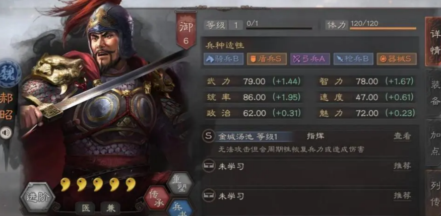 阵容的战法搭配需要围绕司马懿的后期爆发进行构建。司马懿通常携带用武通神和士别三日作为标准配置,这能提供稳定且不受控制的指挥被动伤害;若考虑到战场环境中有较多像吕布这样的队伍,或为了应对当锋摧决等战法,也可将用武通神替换为四面楚歌这类高概率主动战法,以触发其前四回合的攻心效果。郝昭的战法选择以辅助和生存为主,常见搭配是刮骨疗毒和士别三日,或者携带文武双全来增强其被动战法的伤害。曹仁则主要承担辅助角色,标配战法是陷阵营和锋矢阵,陷阵营提供前三回合的急救效果,而锋矢阵能进一步放大司马懿的输出并保护副将。