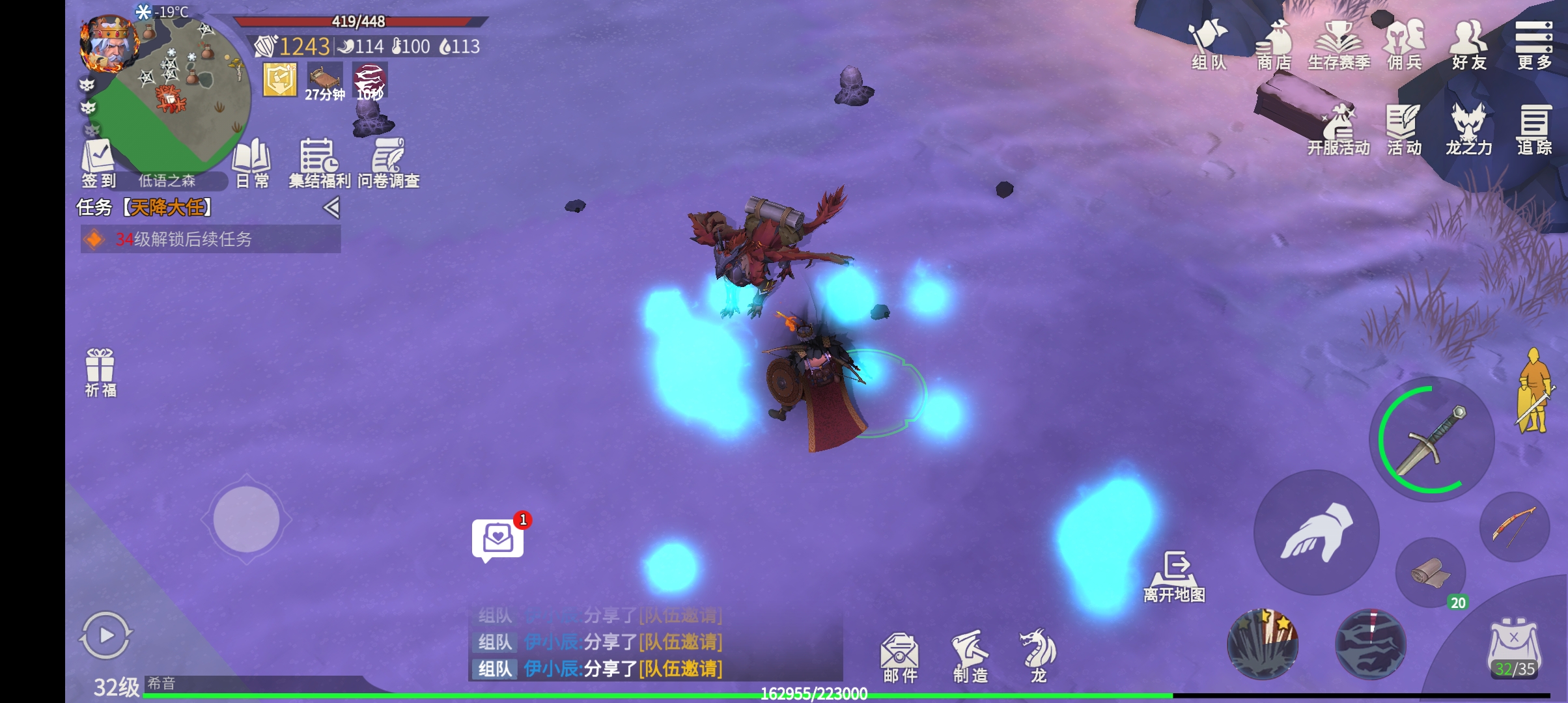 清理完小怪和完成资源采集后,最后需要面对的是本图的守关首领寒霜蜘蛛,这个BOSS拥有两个范围攻击技能,但技能的施法前摇都比较明显,地面上会出现黄色的提示圈,只要及时走位躲避即可,因此战斗的核心策略就是观察BOSS动作,灵活走位躲开技能范围,然后抓紧攻击间隙进行输出,对于第一次挑战或战力吃紧的玩家,带上自己的巨龙伙伴参战会大大增加安全感和胜算,只要稳扎稳打,躲好技能,击败它并非难事,战胜BOSS后,此次困难模式的探索便基本成功了。