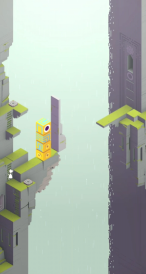 你首先需要控制艾达沿着楼梯爬到上层,踩下那个橙色的按钮开关,这样会触发机关让图腾从瀑布下方升起来。图腾升起后,你把它移动到转轴旁边的灰色平台上,然后转动轮轴让图腾逆时针旋转90度,让它与左侧的绿色平台连接起来,这样艾达就能走上图腾到达中间的小平台。接着再次转动轮轴,让图腾旋转180度,艾达就可以通过图腾走到对面的平台,避开瀑布的阻碍。