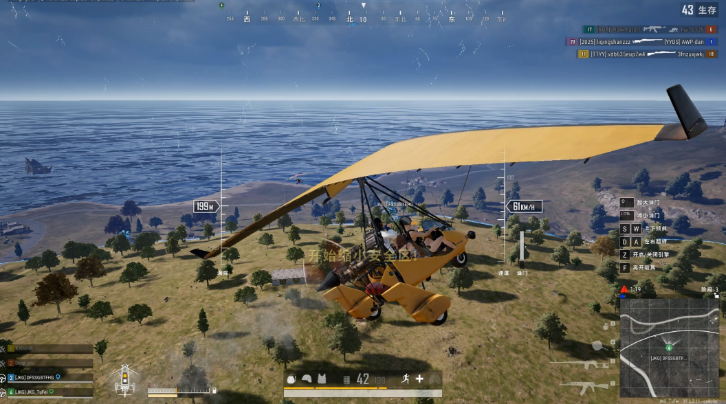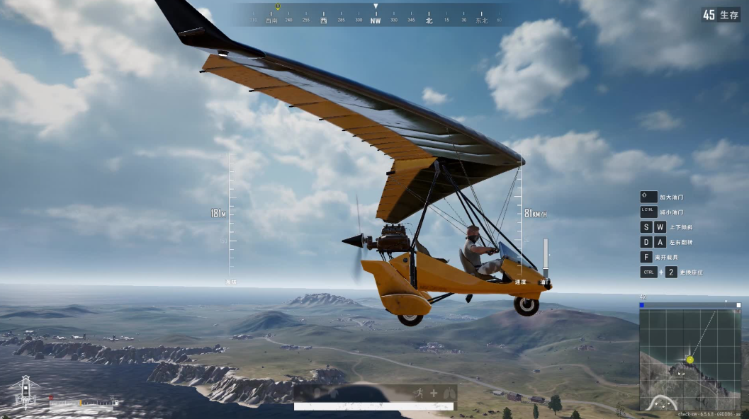 成功找到滑翔机后,掌握驾驶方法是关键。滑翔机可乘坐两人,前座负责驾驶,后座可以使用武器。登机后,首先需要按F键给飞机加油。起飞时,按住Shift键进行加速,当速度达到至少70公里/小时后,按下S键抬起机头即可升空。在空中,使用WASD键控制飞行的高度和方向,左侧Shift键和Ctrl键分别用于控制引擎出力和减速。降落时,按住Ctrl键减速并寻找平坦的跑道或草地,在触地前轻拉机头以平稳着陆。