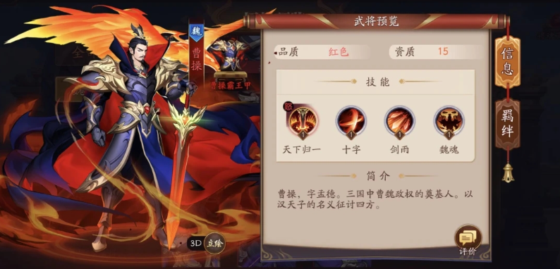 魏国阵容的核心通常由曹操担任,其技能具备显著的全局影响力。曹操的怒气技能不仅能对敌方全体造成可观伤害,更关键的是能大幅降低敌方全体怒气值并提升己方物理伤害,这种兼具压制与强化的能力奠定了魏国战术的基石。与之形成强力配合的往往是司马懿,其高额