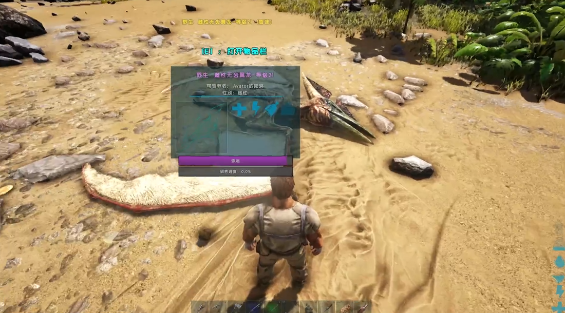 翼龙的等级是决定肉量消耗的核心因素,等级越高饥饿值上限与驯服进度需求越高,肉量消耗随之增加。生肉是前期最易获取的驯服食材,直接放入昏迷翼龙背包即可自动进食推进驯养,无需手动投喂,全程只需保证背包内有充足生肉,避免因食物不足导致驯服中断。优质生肉的驯服效率远高于普通生肉,能缩短进食间隔与整体耗时,同时减少总消耗,适合追求高效驯服或携带资源有限的场景,渡渡鸟蛋饲料为最优选择,可进一步降低食物消耗并提升驯服后属性加成。