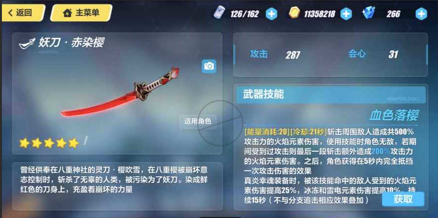 接下来是妖刀·赤染樱,火伤队的核心武器之一,超限后更是炎八的毕业装。它的优势在于能提供稳定的火焰元素加成,打火伤boss时表现突出。不过和磁暴·斩类似,它也需要特定角色配合才能发挥最大作用。如果你更喜欢玩火队,或者已经培养了炎八,这把刀就是你的首选。