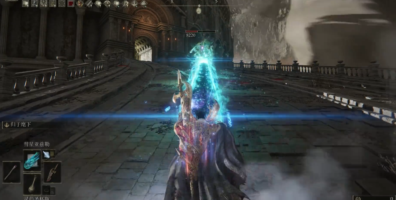 彗星亚兹勒是个超强力的起源魔法。这玩意儿智力要求高达60点,但伤害绝对对得起这份投入,长按能持续发射激光直到蓝条耗尽,对付BOSS和群怪都特别爽。咱们得先跑到火山区域的遁世者村,具体位置在官邸周围的火山地带,从沸腾河传送点出发绕火山跑一圈就能找到。