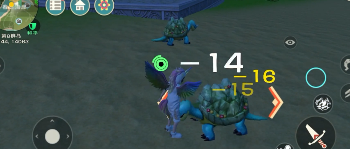 先用木棒敲它几下,让它慢慢往陆地爬,这样咱们就能更方便地控制战斗节奏。如果它想跑回水里,就赶紧拦住。等乌龟血量降到三分之一左右时,继续用木棒敲晕它。这时候它头上会冒出小星星,表示已经进入可驯服状态。注意别打太狠,万一不小心打死了,就只能重新找一只啦。