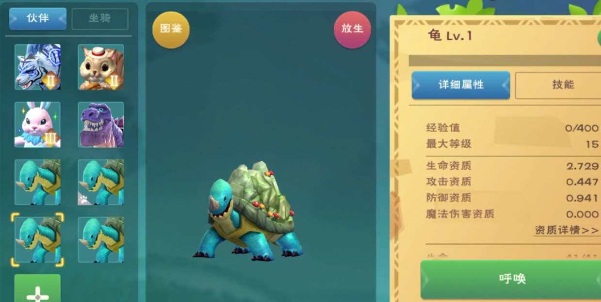 鲤鱼是乌龟的最爱,建议至少准备十几条,这样成功率会更高。对着晕倒的乌龟连续投喂,直到它头上冒出爱心符号,就说明它已经认可咱们啦。这时候赶紧掏出捕捉器,把它收服。乌龟只能当宠物,不能骑乘,所以别指望它能带着咱们到处跑哦。