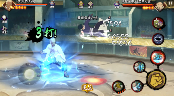 四代雷影的平A是咱们在决斗场里最常用的起手方式之一,尤其是第五下的抱摔抓取,能破霸体还能打反手。他的平A分为六段,前四段是常规的体术连击,第五下会抱住对手转圈甩出去,第六段跳起来补一刀。要注意的是第五下抱摔后对手会浮空,这时候可以接技能或者继续平A连招,但别贪第六段,因为后摇比较大容易被反打。