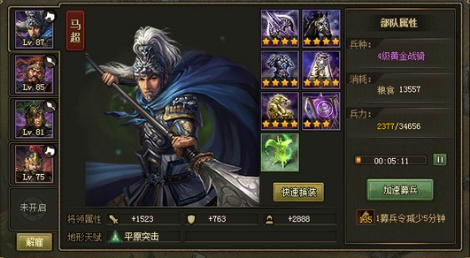 地形是平原,所以咱们的武将不用考虑山地或水域加成。重点在于马超和甘宁的配合,一个负责输出,一个负责扛伤害。如果发现马超扛不住,可以给他多穿点防御装,比如强防和血装。徐晃的任务是过渡,别让他浪费太多兵力,不然最后打曹操会不够用。许褚虽然输出一般,但关键时刻能补刀,别小看他。打之前记得检查兵器等级和宝石,尤其是乱舞石和斩杀石,能提高不少输出。