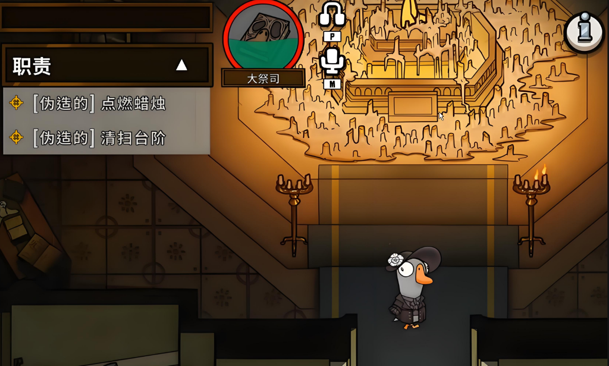 鹅鸭杀大祭司是鸭子阵营中一个独特的角色,其核心技能是在会议期间通过猜测其他玩家的身份来发动攻击。大祭司需要收集一定量的腐化药水才能激活类似刺客的技能,在会议中准确猜中目标角色即可将其杀死。与刺客不同,大祭司拥有两次射击机会且猜错不会死亡,但必须通过收集腐化才能进行射击。若猜测失败,所有玩家会听到一个新的提示音效。这一机制使得大祭司成为兼具策略性和容错率的角色。