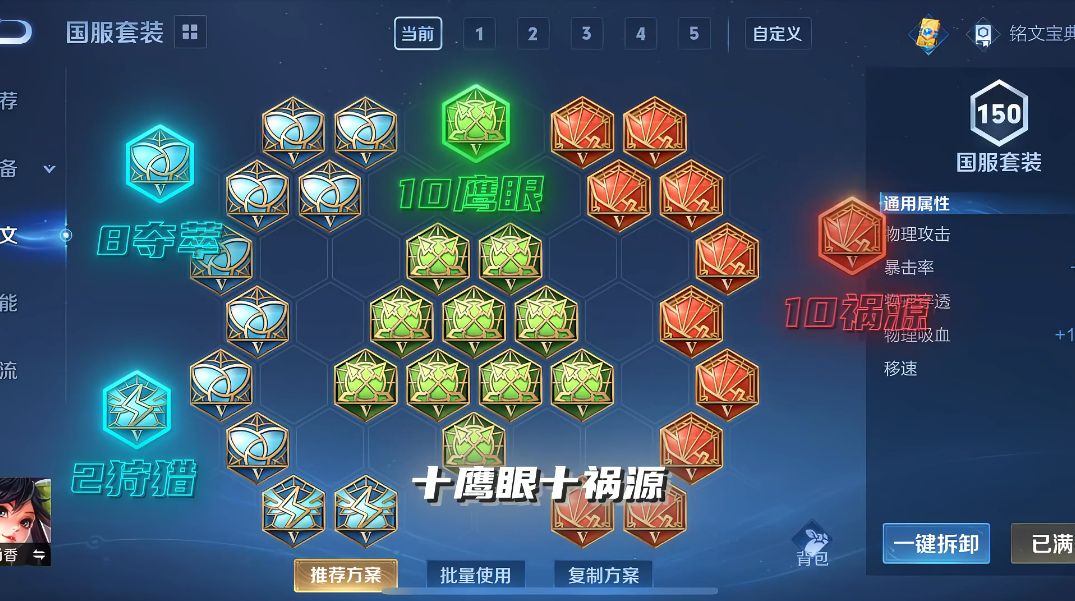暴击流选择10祸源(暴击率+16%)、10鹰眼(物理攻击+9,物理穿透+64)、10隐匿(物理攻击+16,移速+10%),该组合显著提升前期暴击概率与伤害,加速清线和发育节奏,移速加成优化走位。百穿流采用10异变(物理攻击+20,物理穿透+36)、10鹰眼、10狩猎(攻速+10%,移速+10%),提供总计100点物理穿透与攻速移速加成,需依赖装备补充前期物理攻击,但穿透效果对敌方前排威胁显著。一炮秒人流则依赖10无双(暴击率+7%,暴击效果+36%)、10鹰眼、10夺萃(物理吸血+16%),最大化后期翻滚暴击的斩杀线,高额吸血增强赖线能力,但对装备成型度要求更高。