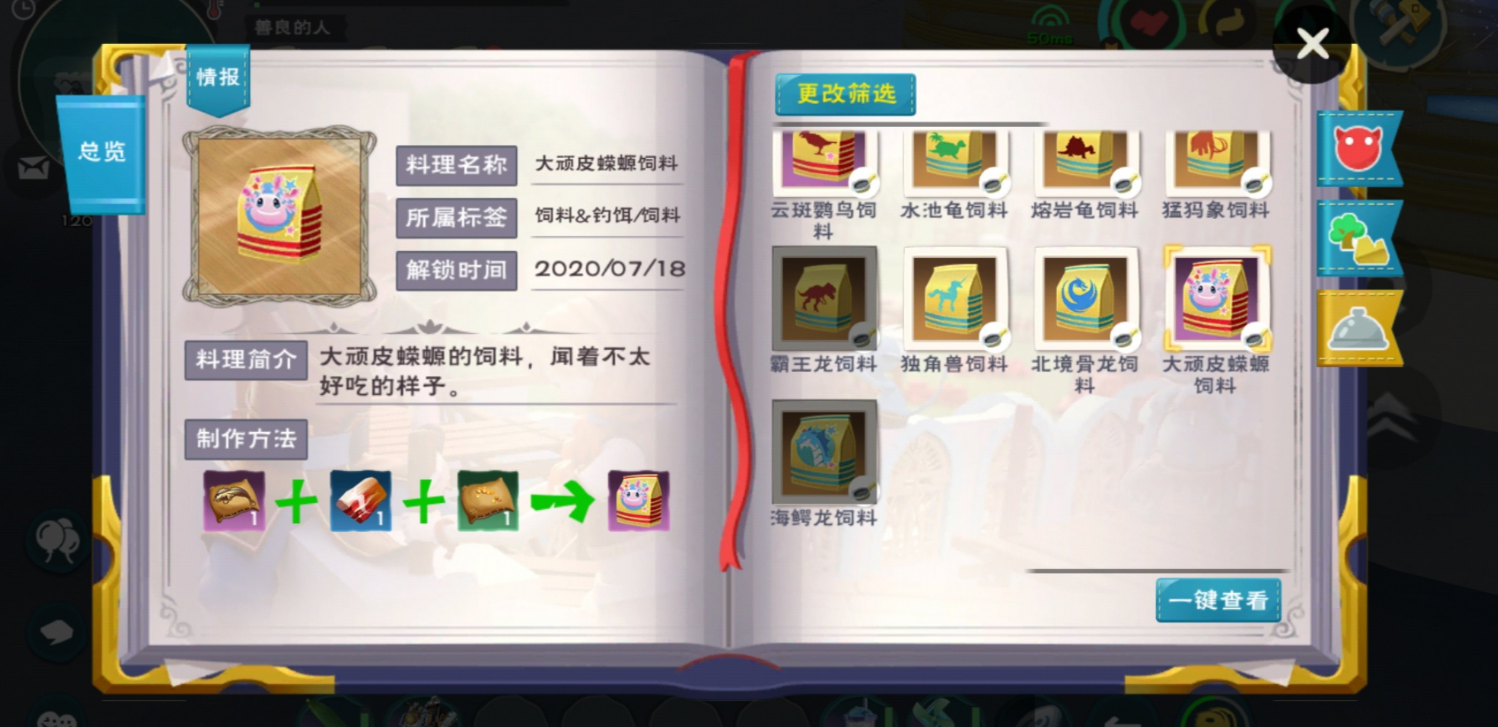 饲料的制作方法很简单,把弹涂鱼、稀有肉和黄豆饲料包丢进烹饪锅就能合成。弹涂鱼建议去火山湖或者晴方河钓,概率会高一些;黄豆可以自己种或者去平原地区采集。千万别省饲料,30包是保底数量,少一包都可能前功尽弃。抓的时候最好带上恢复道具,万一被它打残了还能及时补状态,毕竟这家伙虽然长得萌,动起手来可一点都不含糊。