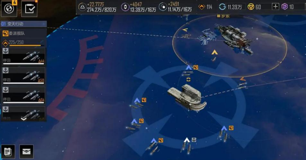 中期发育阶段封锁更实用,尤其是找到小行星带或高级矿区时。这时候咱们的船也升级了,能扛能打,封锁后记得派高速侦查舰先探路,主力舰队再跟上节约时间。别傻乎乎用战巡或航母直接编队,指挥值不够就利用增援功能突破限制,但要注意增援后舰队会取消曲速状态。矿区等级不影响采集速度,只增加储量和对接产量,所以别光盯着高级矿。