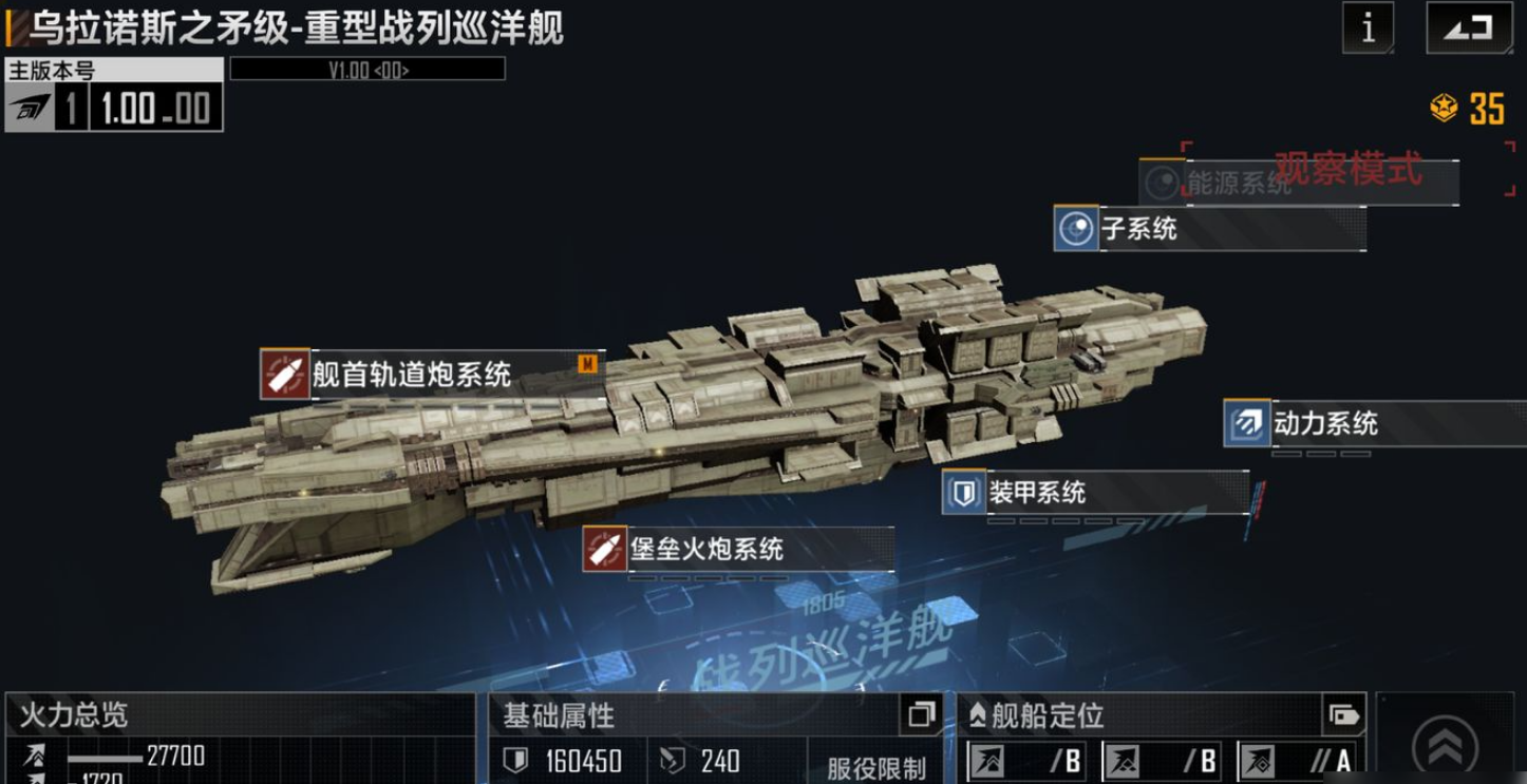 乌拉诺斯之矛(俗称大矛)作为战列巡洋舰中的主力舰,加点方向直接影响实战表现。咱们直接上干货:优先强化装甲系统和舰首轨道炮,这是白板状态下性价比最高的选择。装甲系统建议点满能量涂层、刚性强化和淬火处理,能显著提升生存能力;轨道炮则重点加攻城弹药强化和瞄准机构,弥补白板火力不足的问题。技术值有限时要学会取舍,别平均分配。