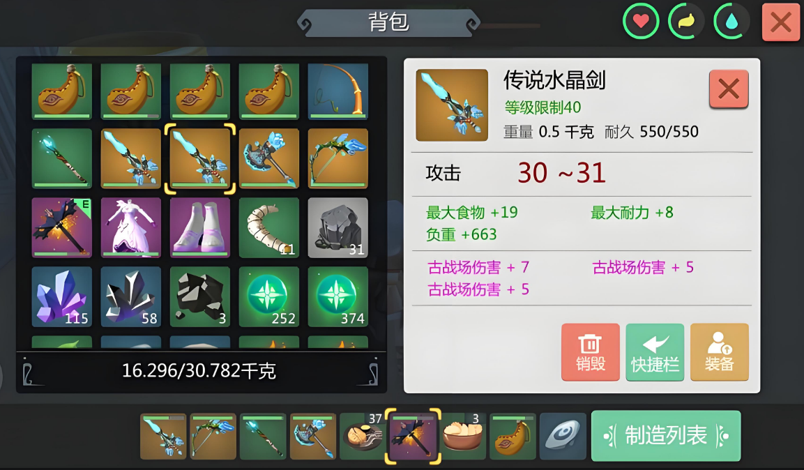 水晶剑是一种以水晶为材料锻造的武器,不仅具备基础攻击能力,还能通过添加剂赋予额外的魔法属性。添加剂是提升水晶剑品质和属性的关键材料,使用后可以增加武器的锋利度或特殊效果,例如元素伤害或生命回复。水晶剑的添加剂主要为蓝宝石,通过挖矿或开启附魔石宝箱获取,而防具类水晶装备的添加剂则是象牙,获取难度较高,通常需通过击杀猛犸象、开宝箱或与其他玩家交易获得。