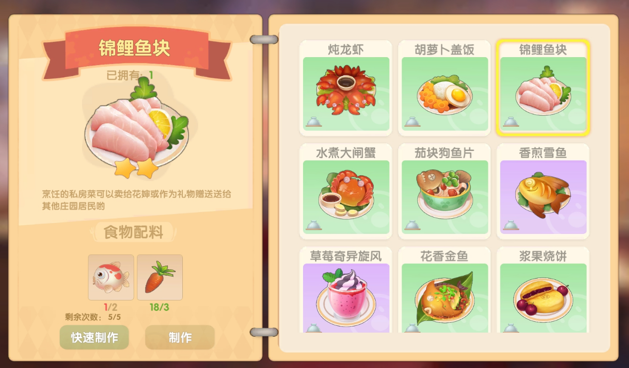 家园鱼塘的钓鱼次数无上限,但公共区域的钓鱼点每日有次数限制。若自身家园特产非锦鲤,可通过社交功能寻找拥有该特产的好友,或加入活跃社区以扩大资源获取渠道。完成钓鱼后,锦鲤可用于提交订单、兑换奖励或作为烹饪材料,具有一定的实用价值。