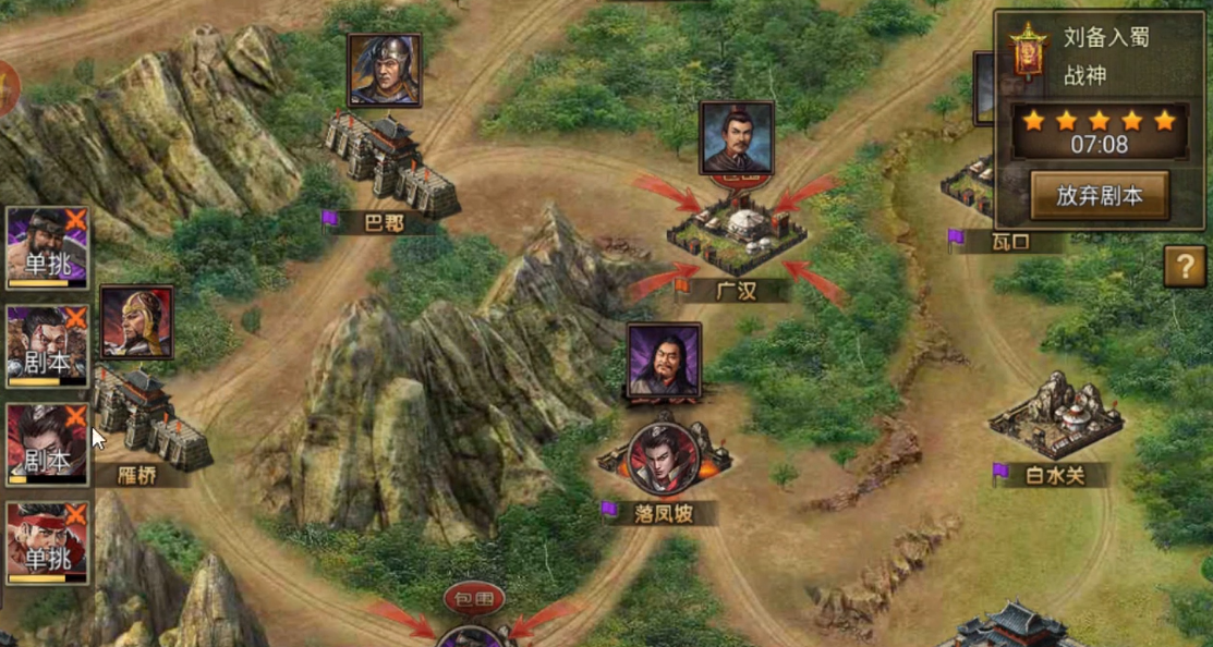 最后提醒几个细节:别为了省影子影响评星,该用就用;晶石选带多个技能的;打完雁桥立刻派两将处理事件;成都拿下后第一时间点刘备头像结束。如果时间总差20秒,可以提前点涪城NPC让影子处理新增敌兵。战神难度比地狱简单些,重点是多线操作,比如同时让广汉和涪城的将交替单挑。