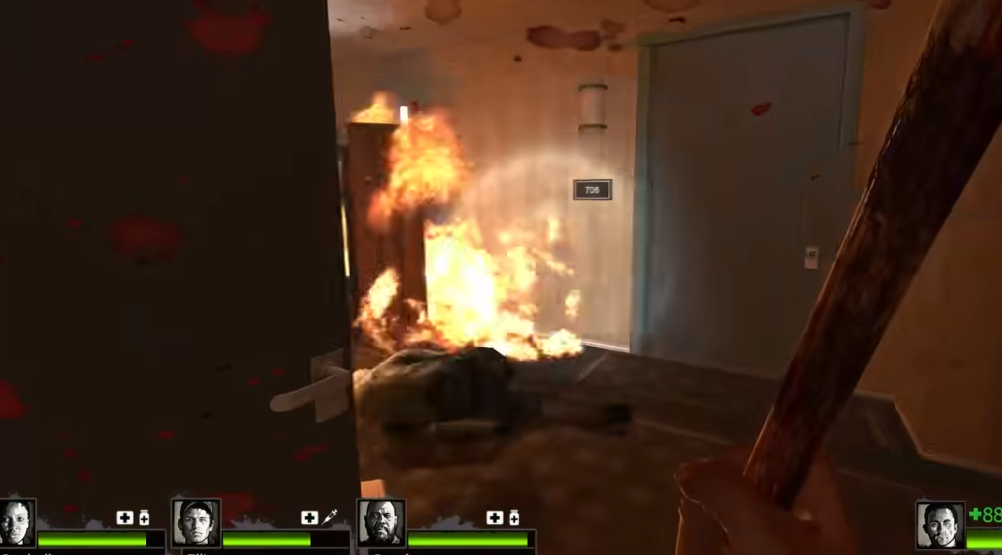 按下E键打开电梯门,门外为着火楼层,需沿右侧安全路径冲刺,注意地面火焰与燃烧僵尸的区别。途中可拾取长枪补充火力,最终抵达大厅安全门完成关卡。若队伍成员被特感控制,必须立即救援,拖延会导致防守阵型崩溃。整个过程中保持语音沟通和资源分配是存活的关键。